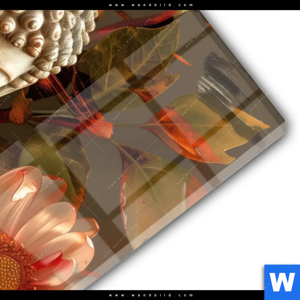 Acrylglasbild | Abstrakter Buddha & Blumen | Hochformat