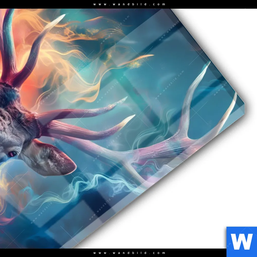 Acrylglasbild | Bunter Hirsch in Flammen | Hochformat