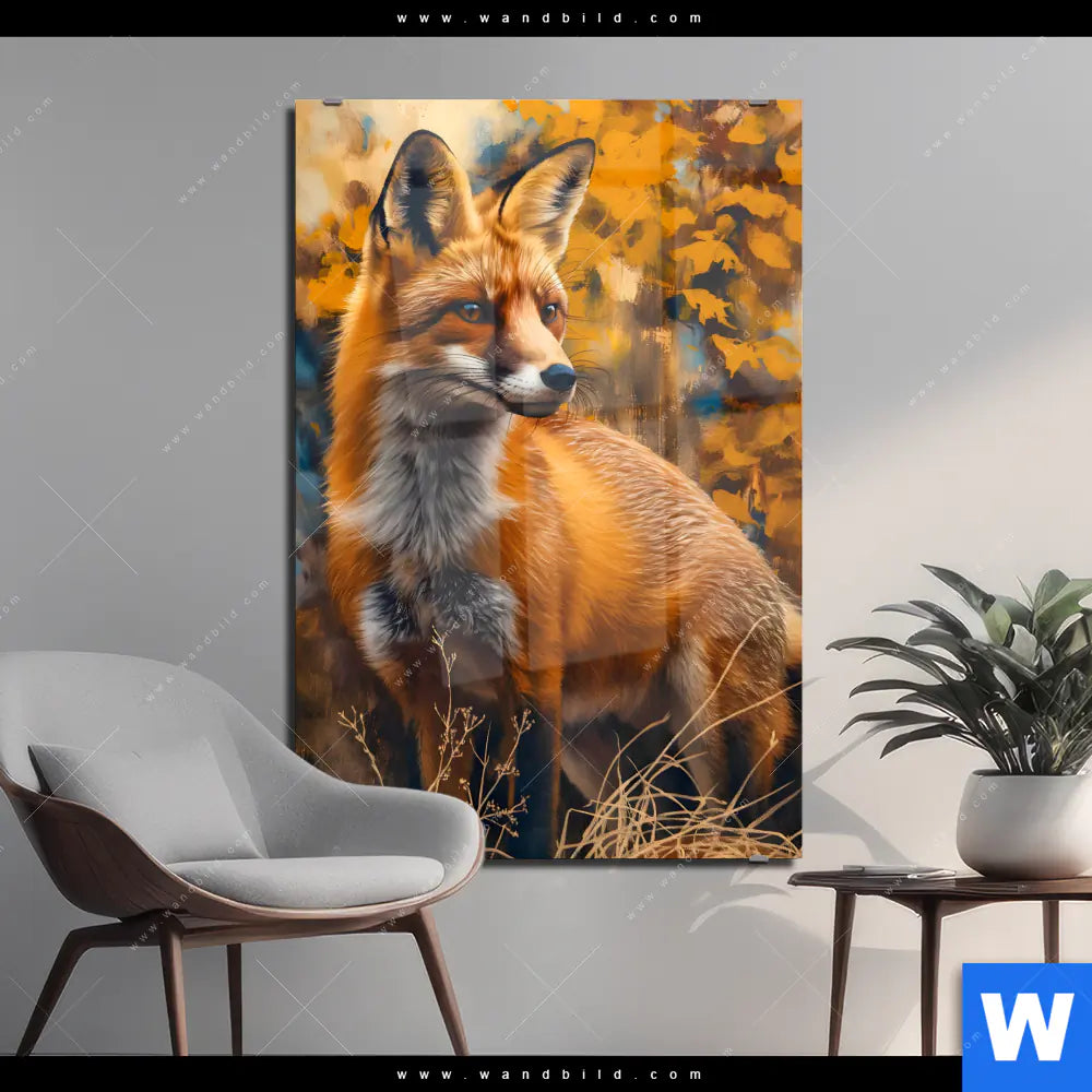 Acrylglasbild | Herbstzeit mit Rotfuchs | Hochformat