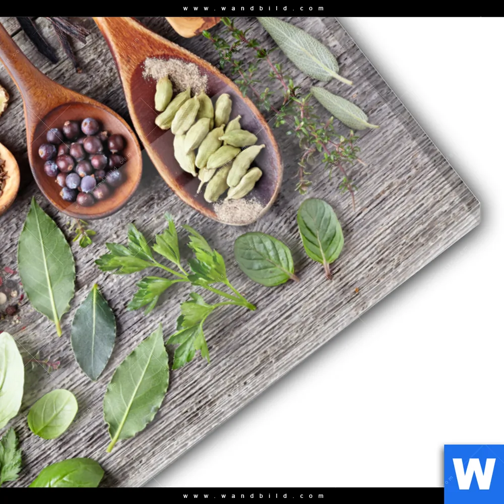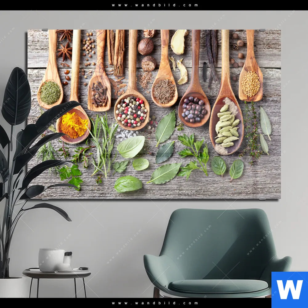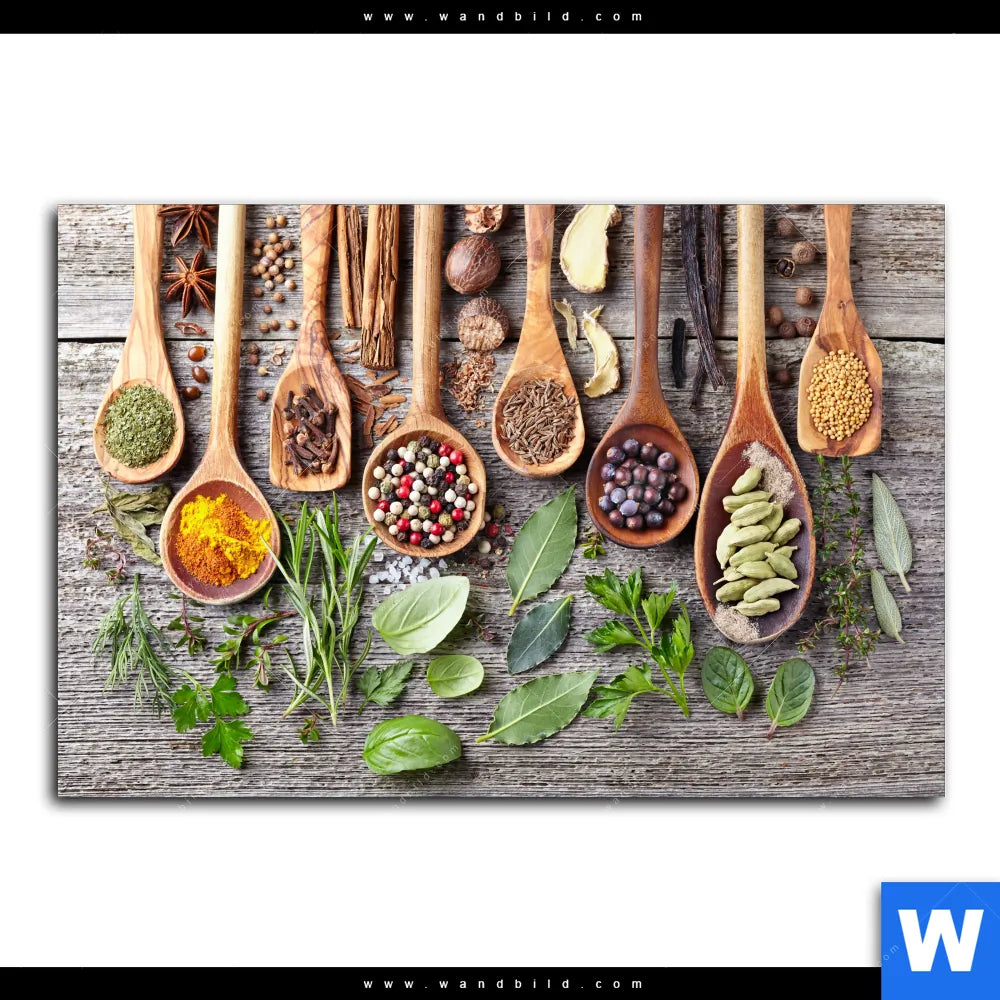 Acrylglasbild | Gewürze auf Holzlöffeln | Querformat