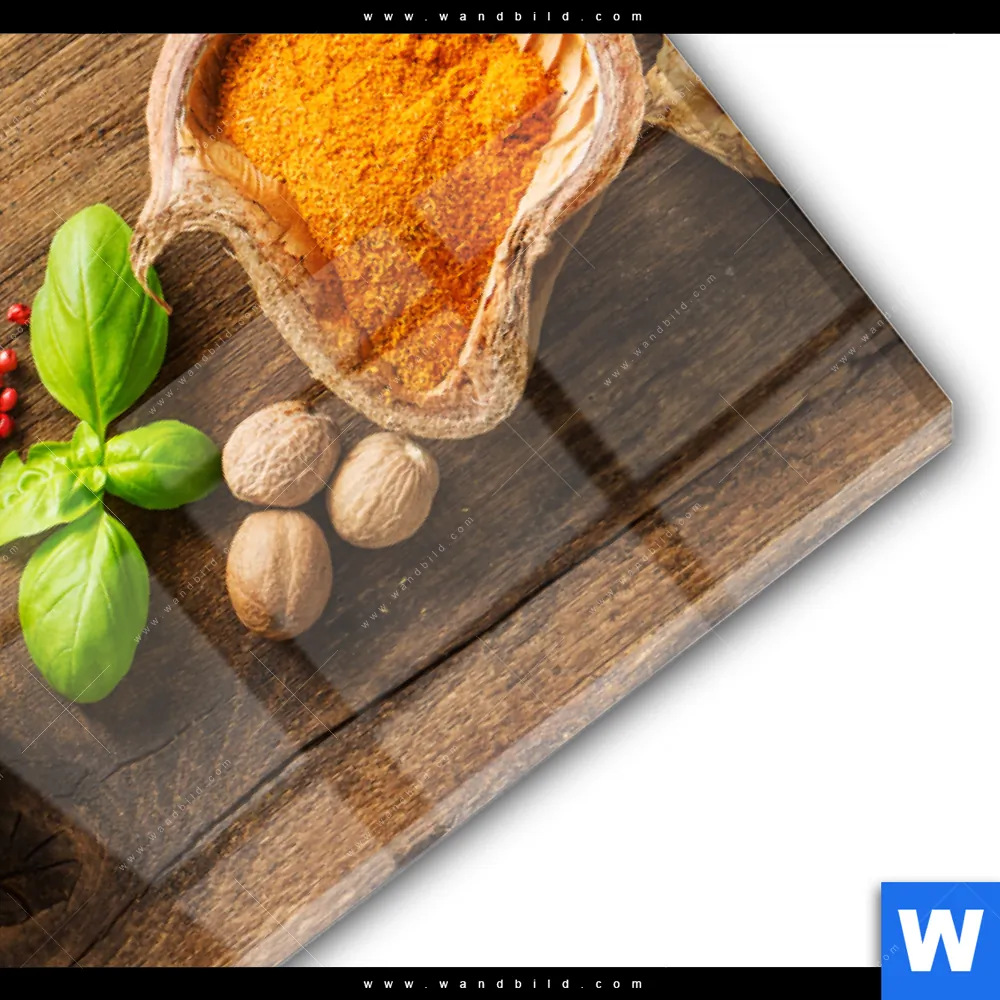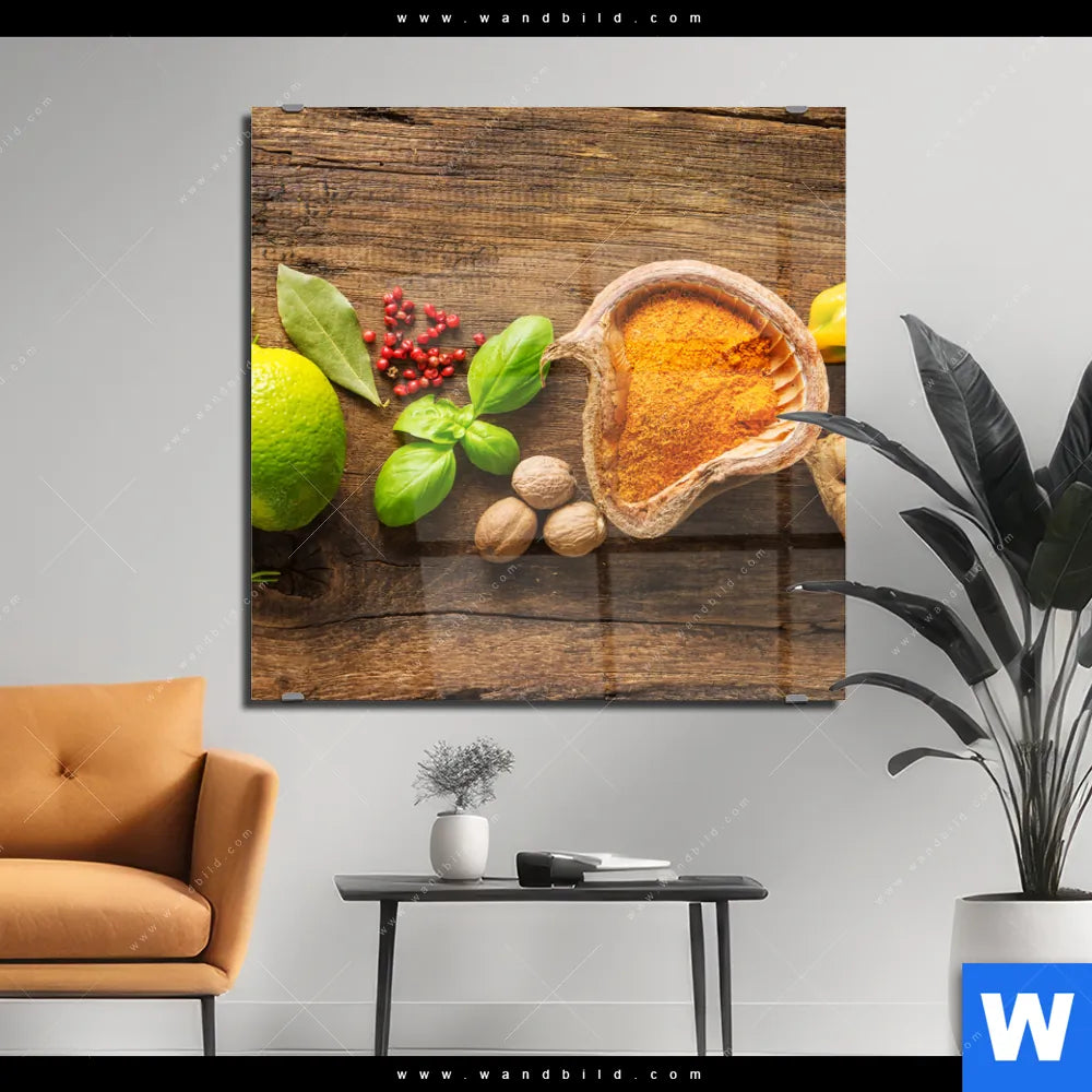 Acrylglasbild | Gewürze & Kräuter auf Holz | Quadrat