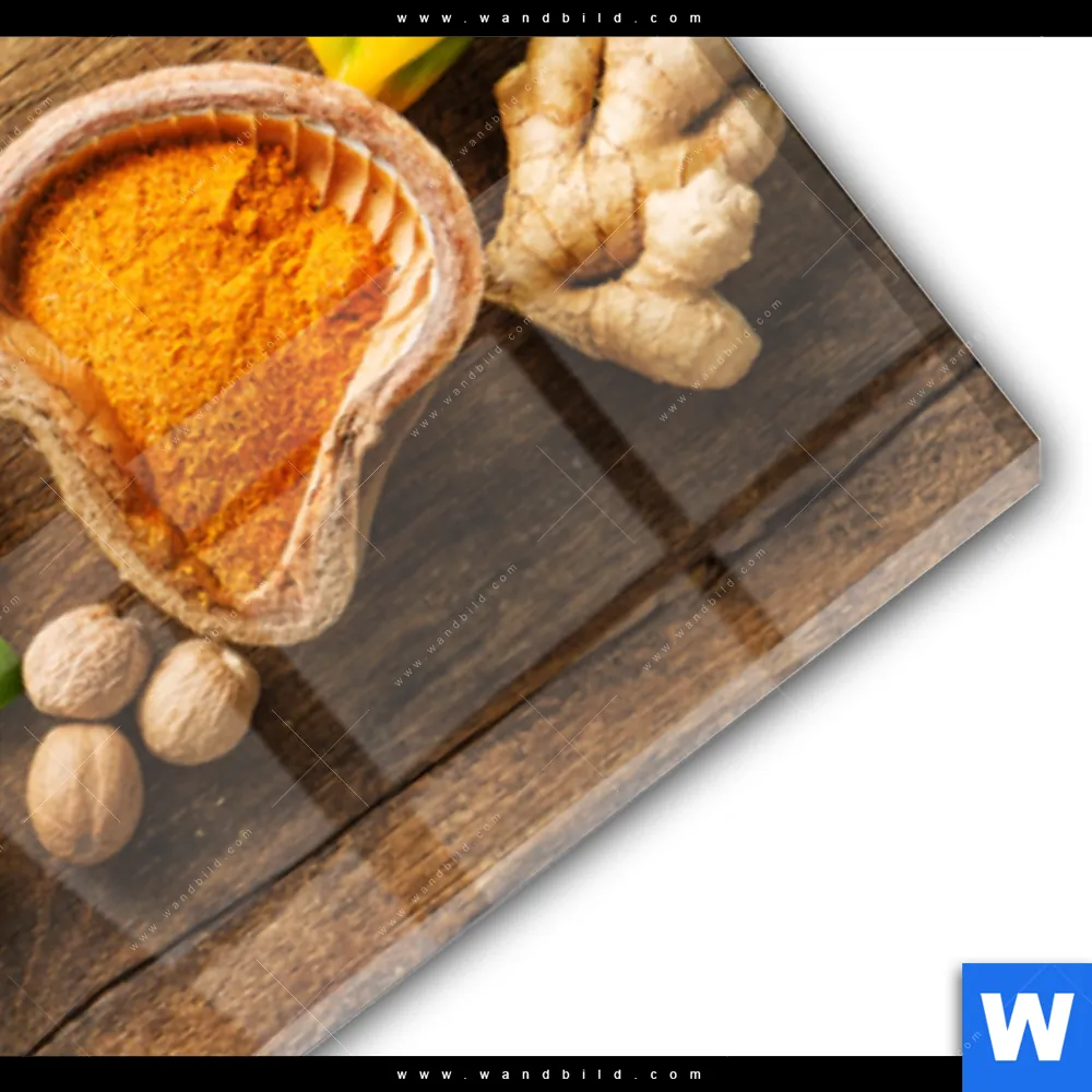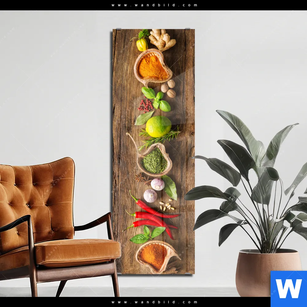 Acrylglasbild | Gewürze & Kräuter auf Holz | Schmal