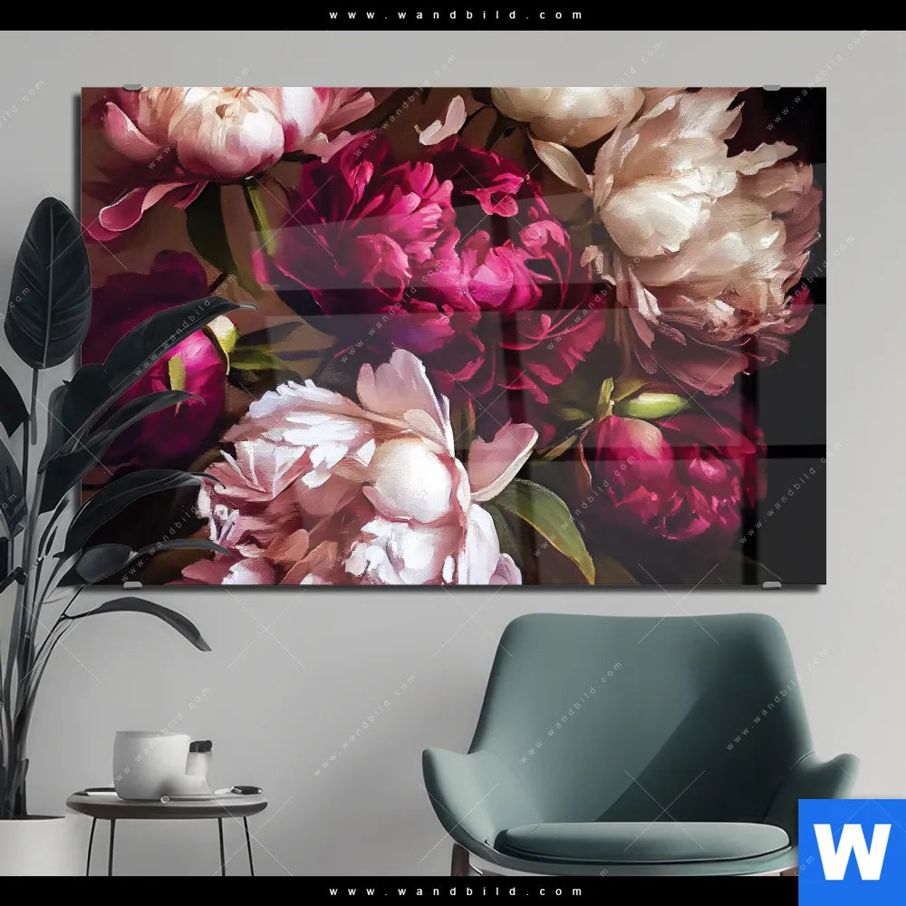 Acrylglasbild | Pfingstrosen im Barockstil | Querformat