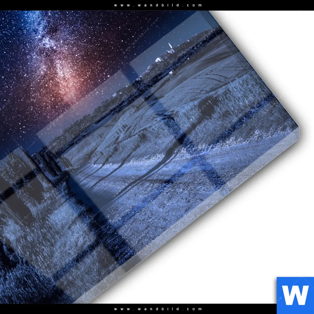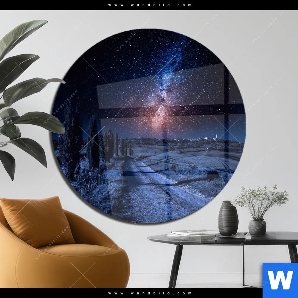 Acrylglasbild | Milchstraße über einem Feldweg | Rund
