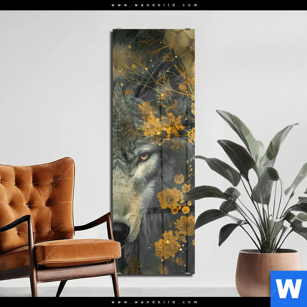 Acrylglasbild | Goldener Wolfblick | Schmal