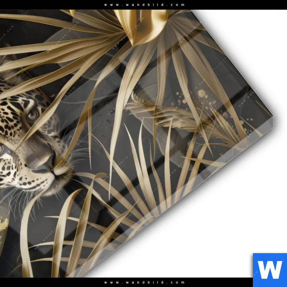Acrylglasbild | Leopard in goldener Tarnung | Querformat