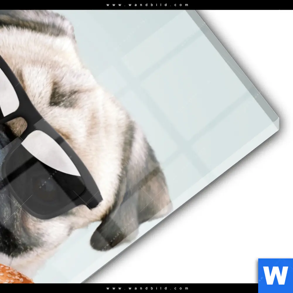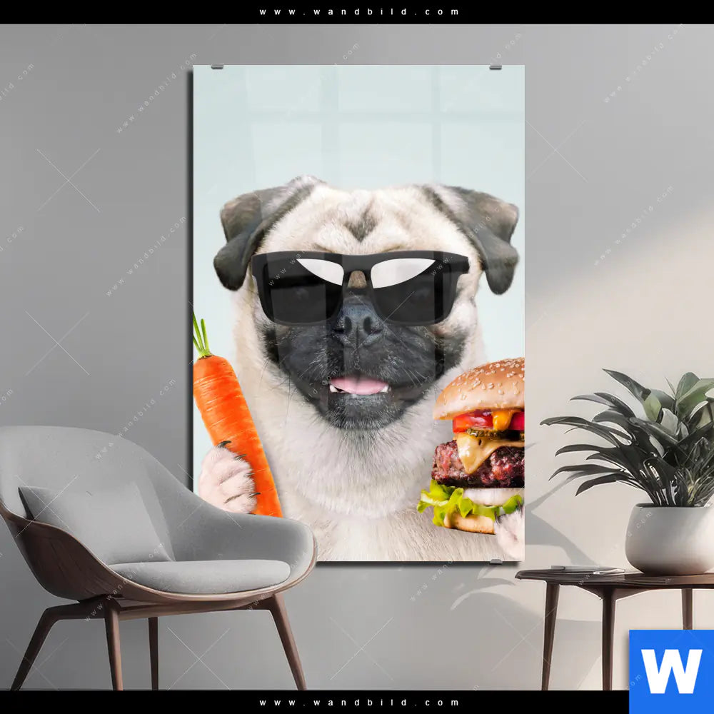 Acrylglasbild | Lustiger Hund mit Burger | Hochformat