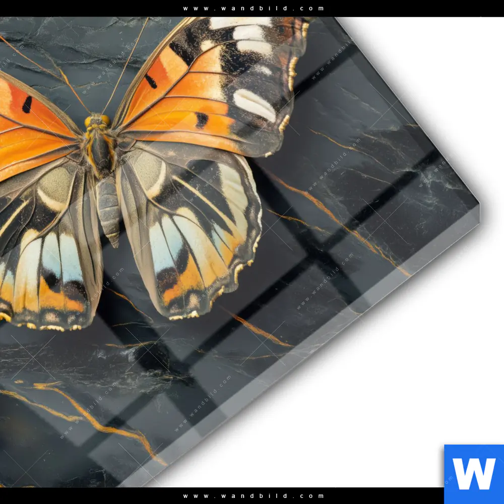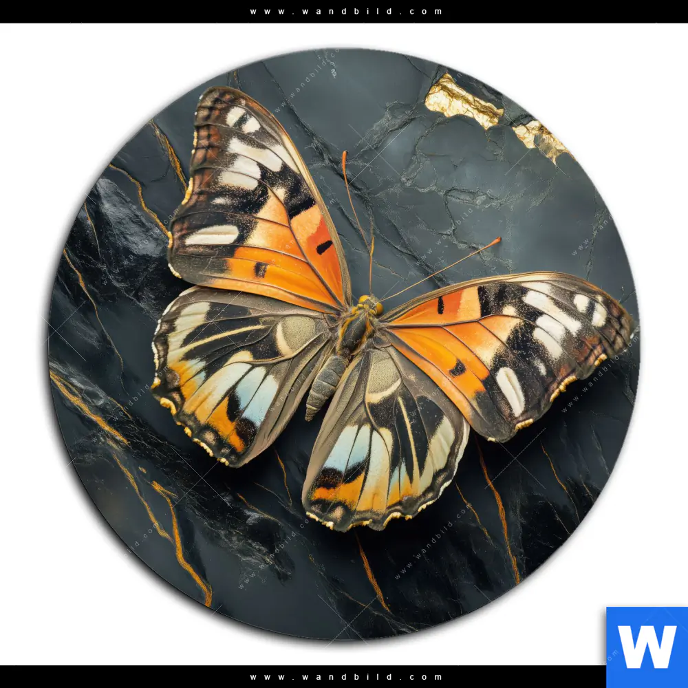 Acrylglasbild | Schmetterling auf Marmor | Rund