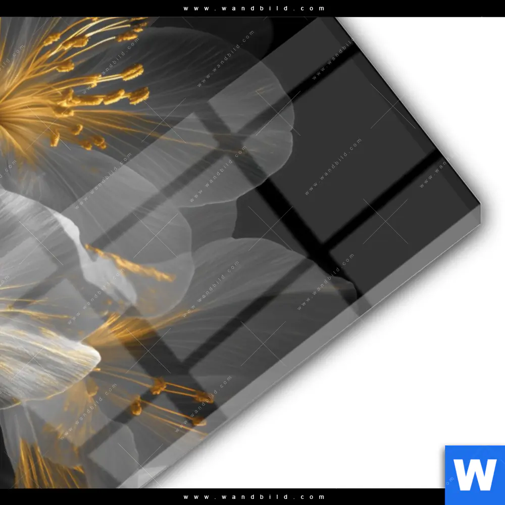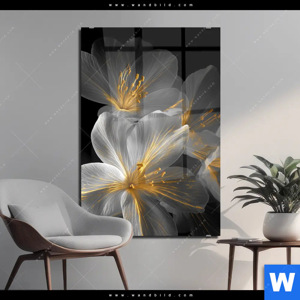 Acrylglasbild | Blüten Gold & Weiß | Hochformat