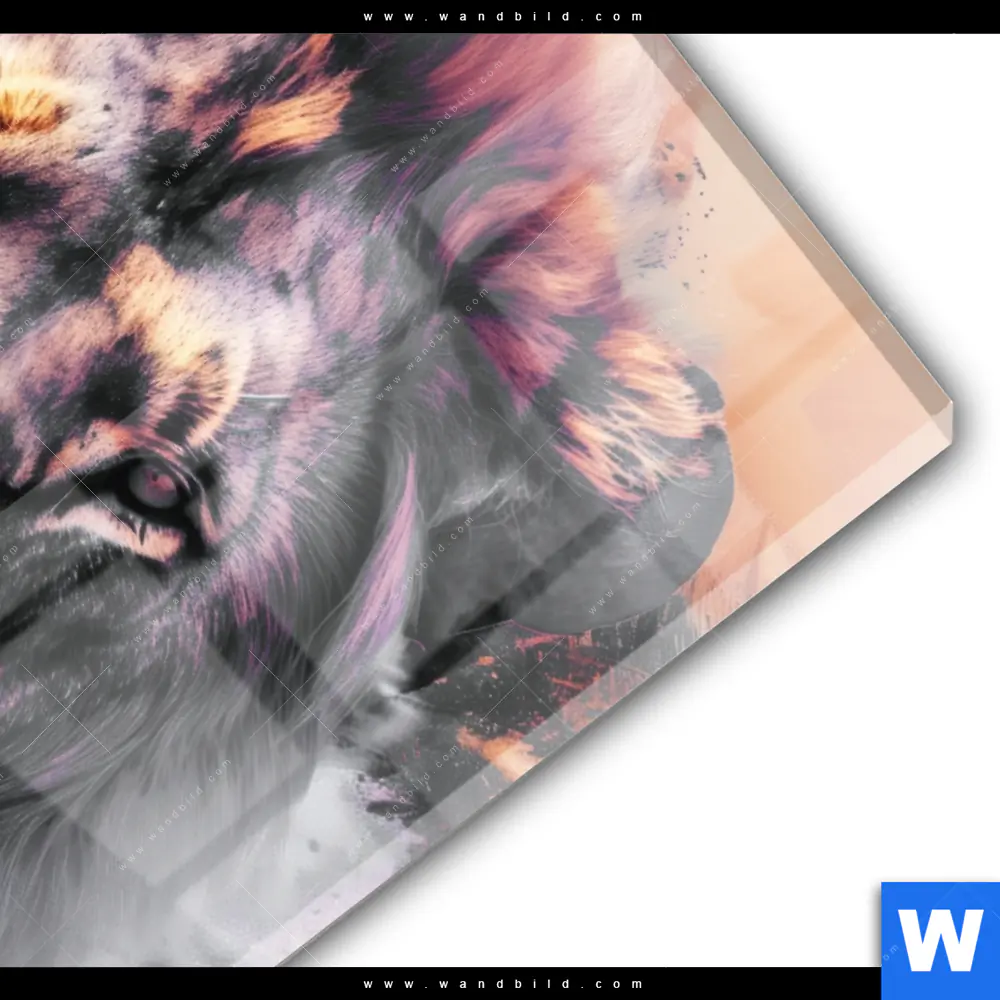 Acrylglasbild | Löwe im Farbensturm | Hochformat