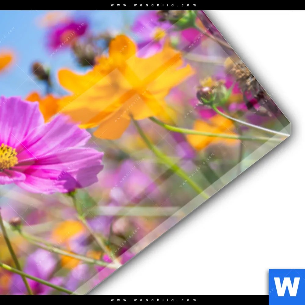 Acrylglasbild | Blumenwiese unter blauem Himmel | Panorama
