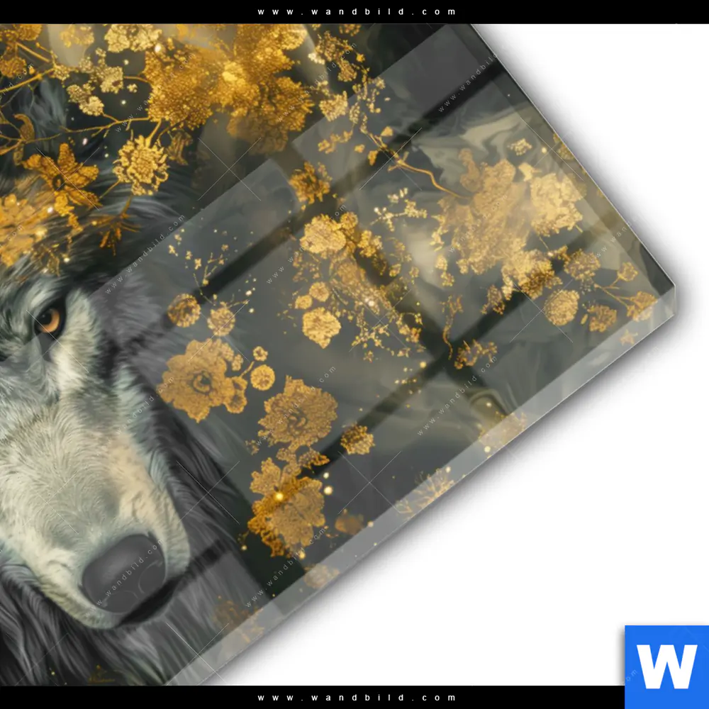 Acrylglasbild | Goldener Wolfblick | Querformat