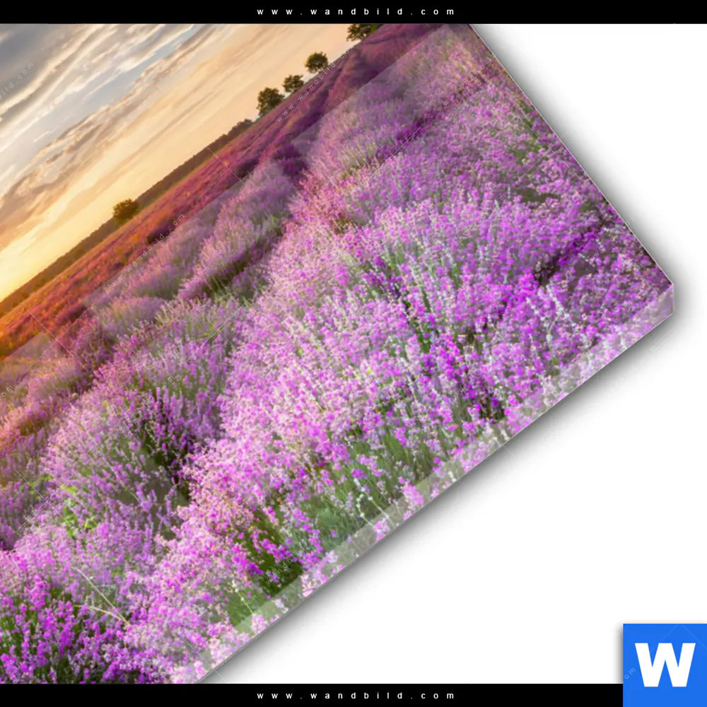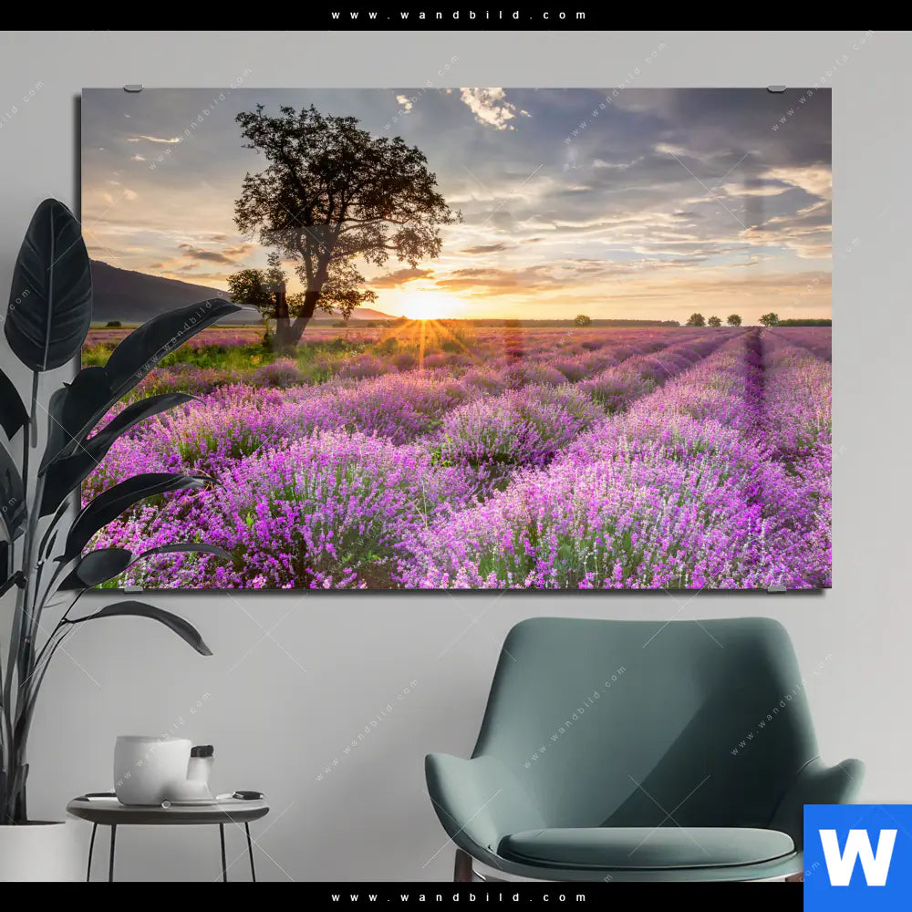 Acrylglasbild | Sonnenaufgang im Lavendelfeld | Querformat