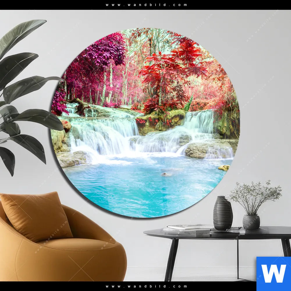 Acrylglasbild | Wald & Wasserfall No. 3 | Rund