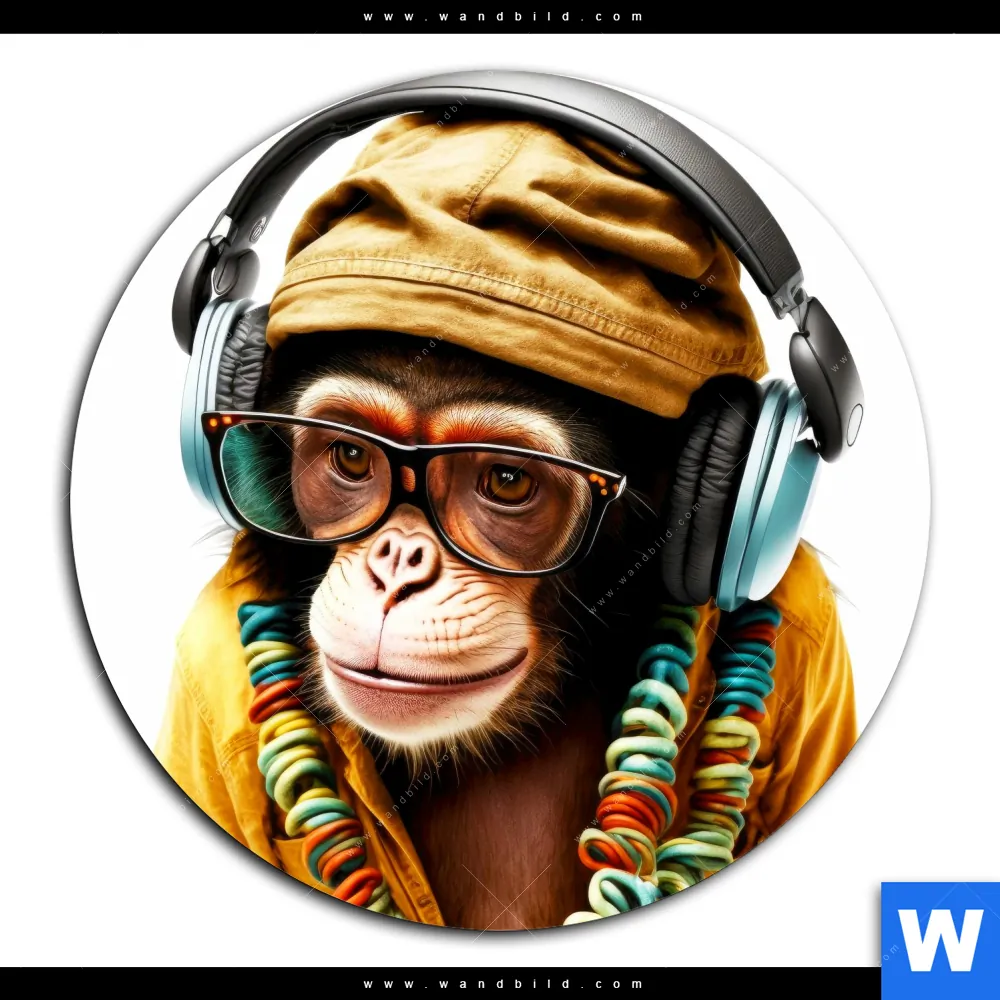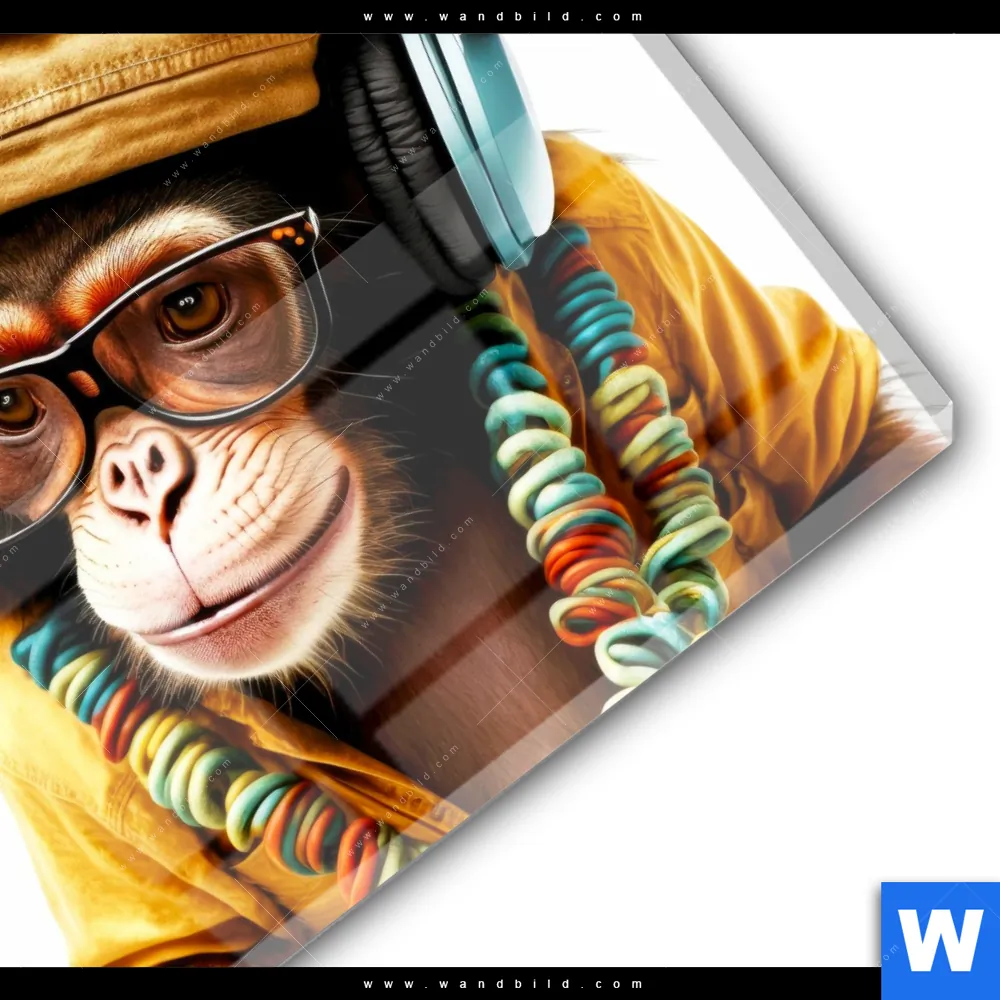 Acrylglasbild | Affe mit Kopfhörern & Brille | Rund