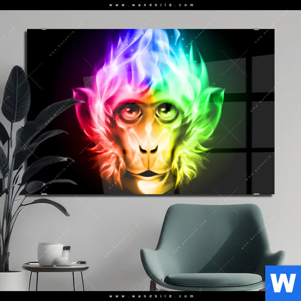Acrylglasbild | Bunter Feuer-Affe | Querformat
