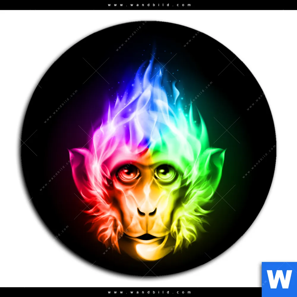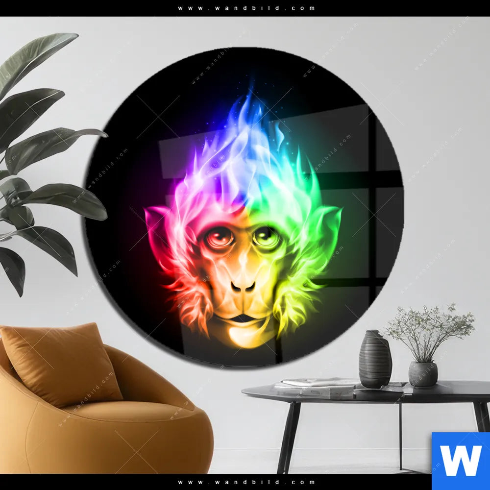 Acrylglasbild | Bunter Feuer-Affe | Rund