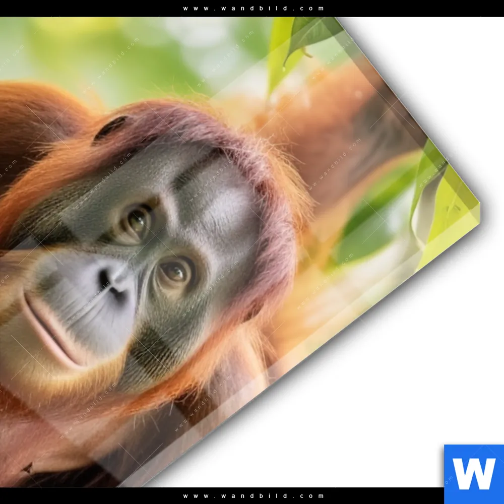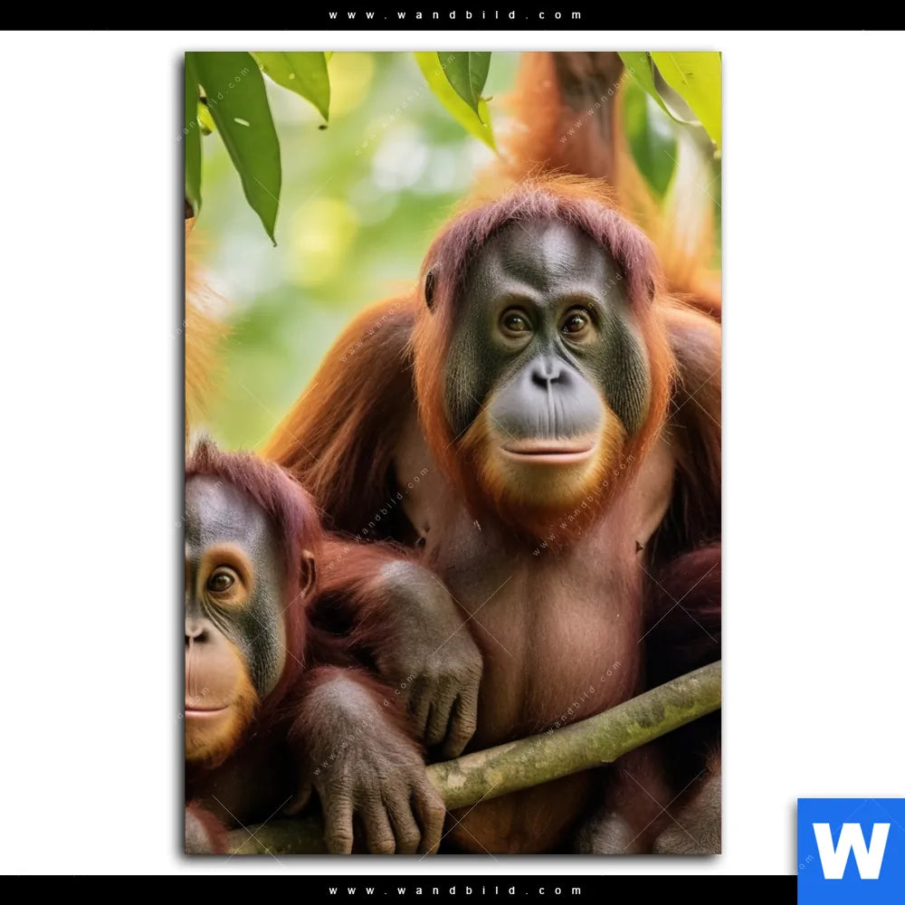 Acrylglasbild | Orang Utan Familie im Regenwald | Hochformat