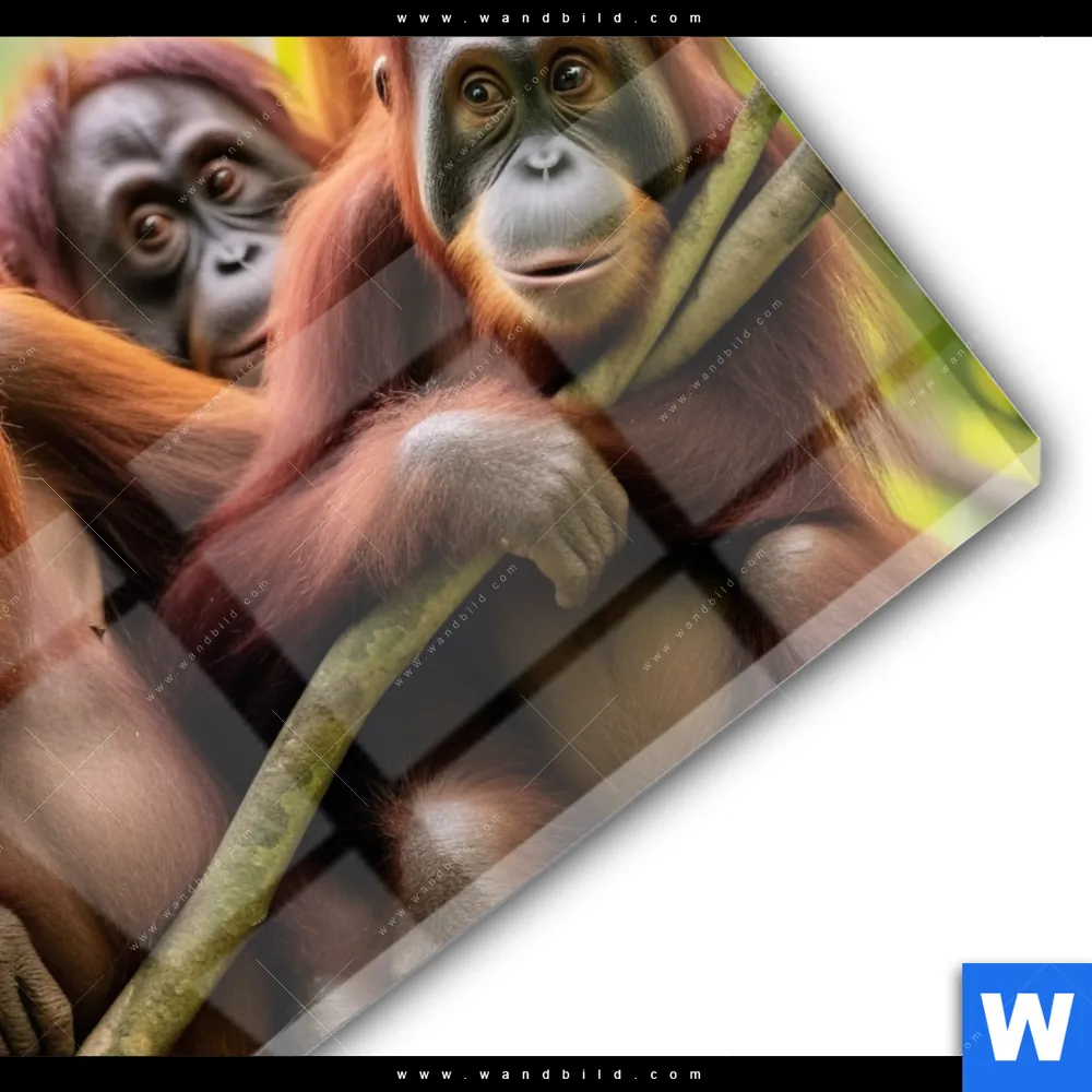Acrylglasbild | Orang Utan Familie im Regenwald | Quadrat