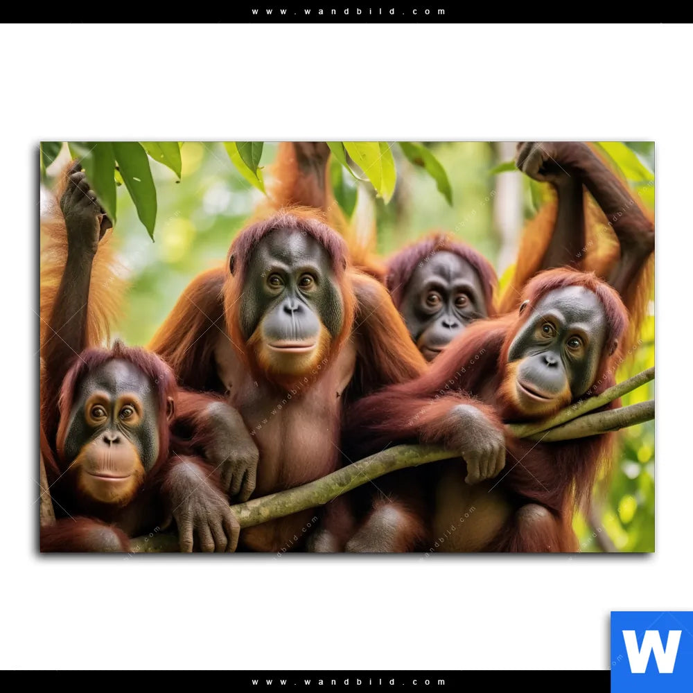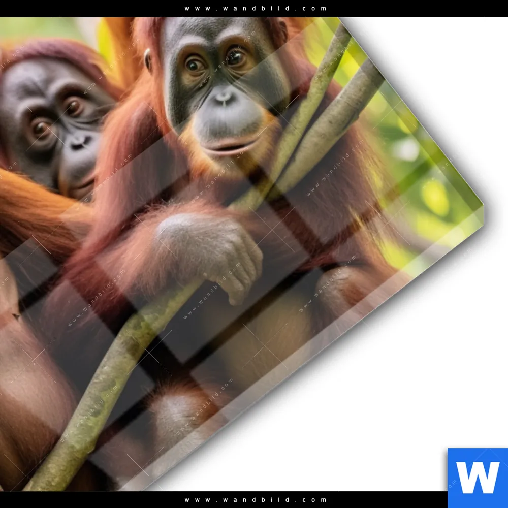Acrylglasbild | Orang Utan Familie im Regenwald | Querformat
