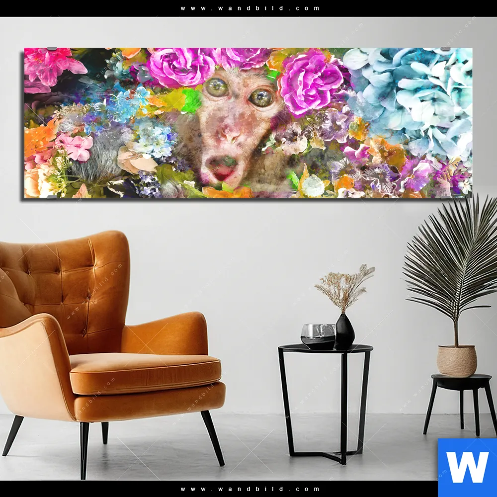Alu-Dibond Bild | Äffchen & Blumen | Panorama