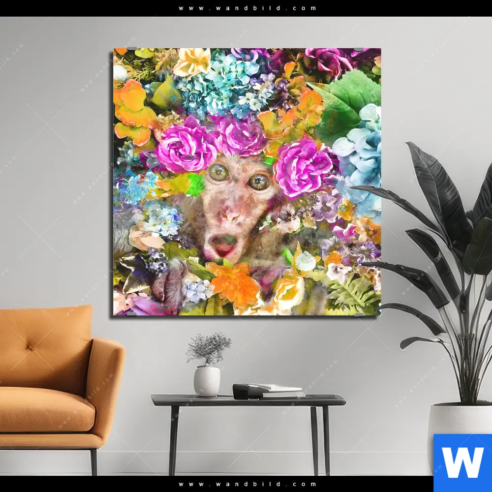 Alu-Dibond Bild | Äffchen & Blumen | Quadrat