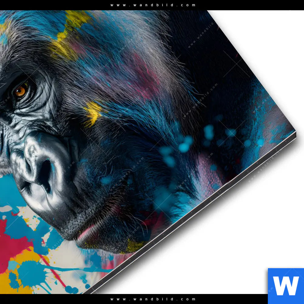 Alu-Dibond Bild | Bunter Gorilla mit Farbspritzern | Quadrat