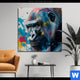 Aluminiumbild gebürstet | Bunter Gorilla mit Farbspritzern | Hochformat