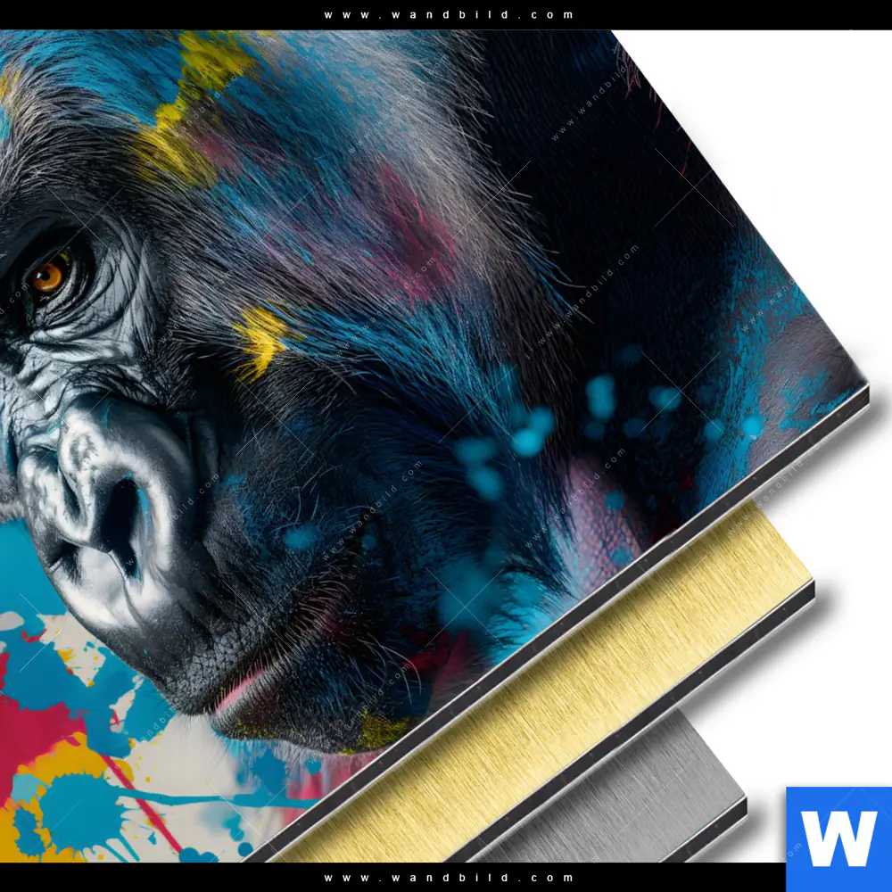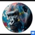 Aluminiumbild gebürstet | Bunter Gorilla mit Farbspritzern | Rund