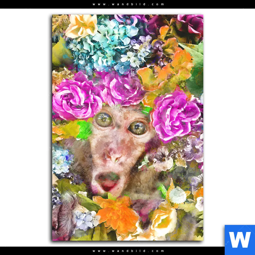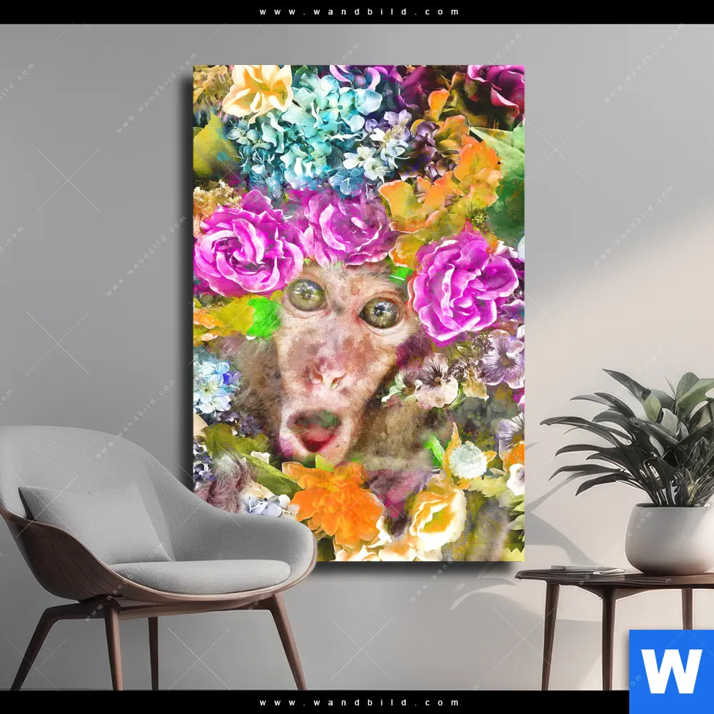 Leinwandbild | Äffchen & Blumen | Hochformat