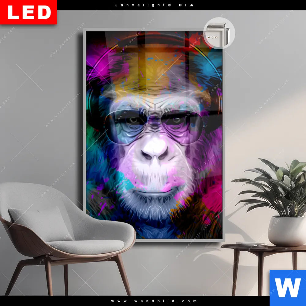 Canvalight® DIA Leuchtbild | Affe Pop Art No.1 | Hochformat