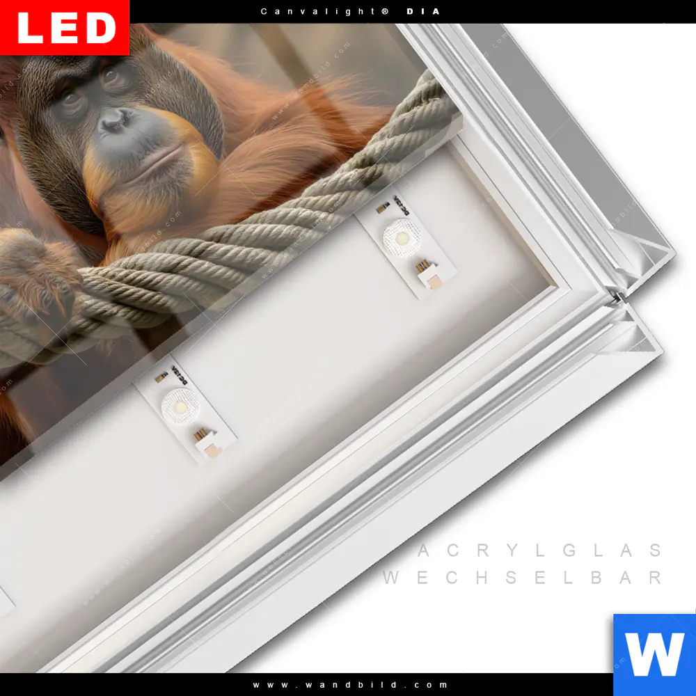 Canvalight® DIA Leuchtbild | Orang-Utan mit sanftem Blick | Querformat
