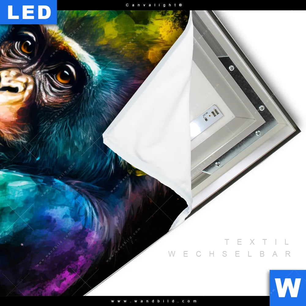 Canvalight® TEX Leuchtbild | Schimpanse in bunten Farben | Hochformat