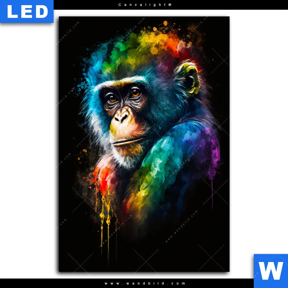 Canvalight® Leuchtbild | Schimpanse in bunten Farben | Hochformat