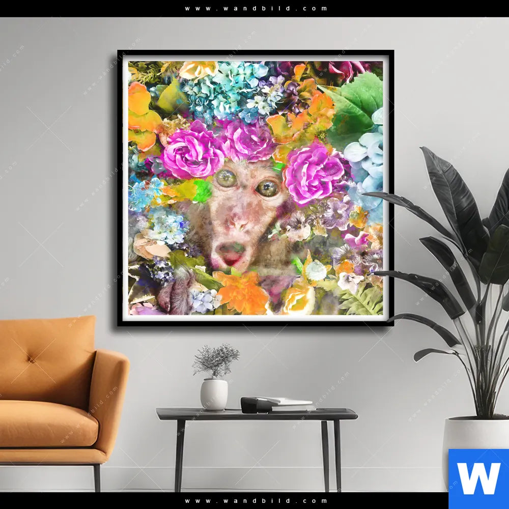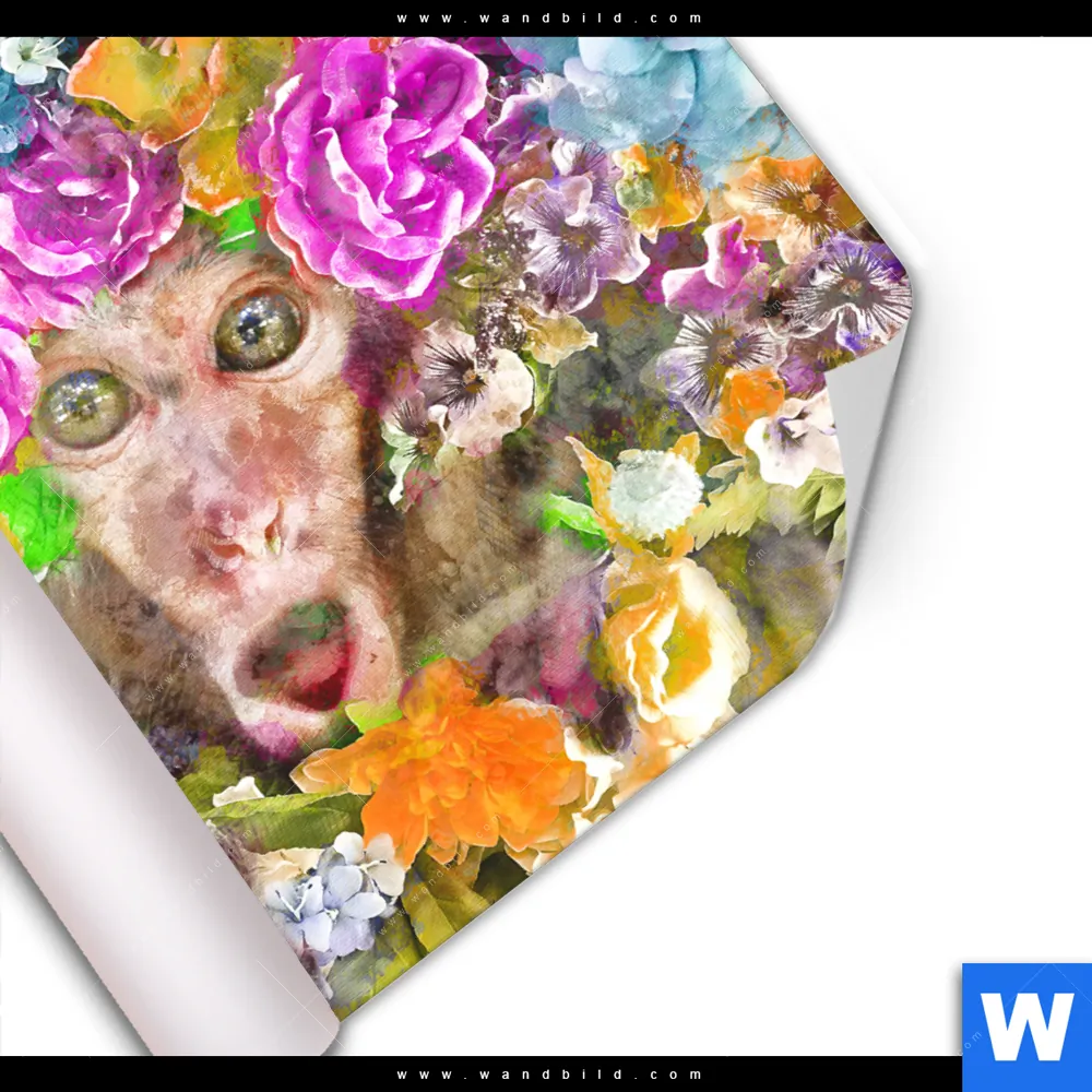 Poster | Äffchen & Blumen | Quadrat
