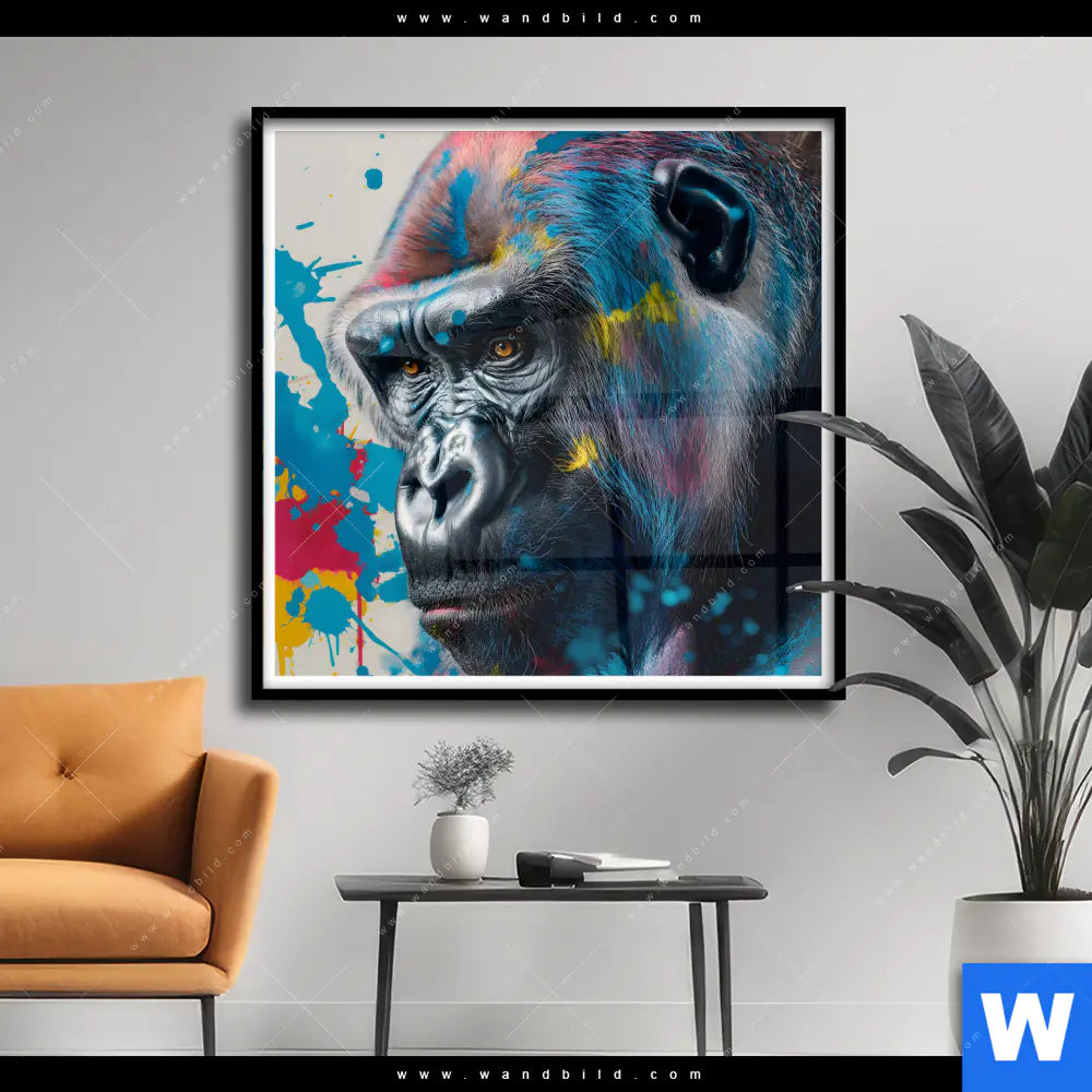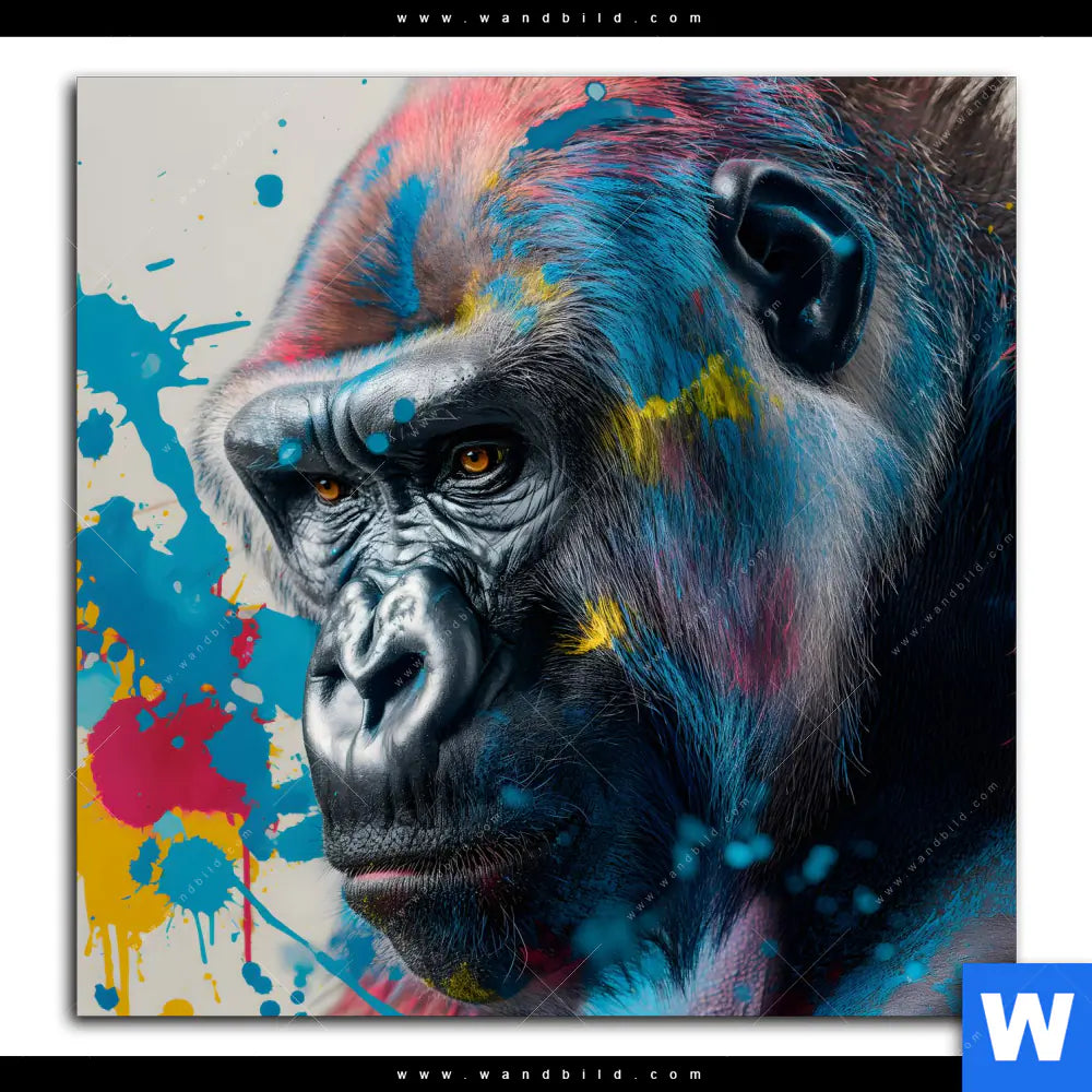 Poster | Bunter Gorilla mit Farbspritzern | Quadrat