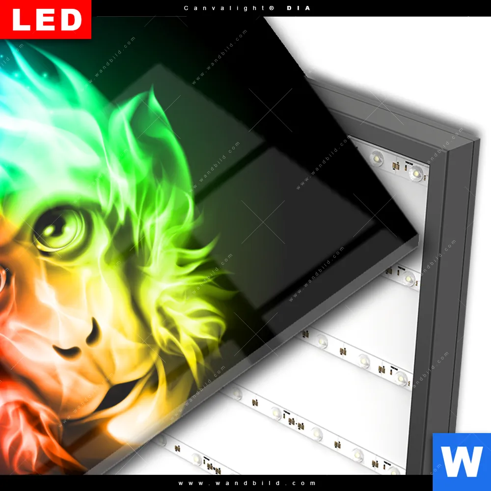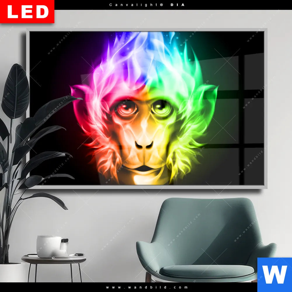 Wechselmotiv Acrylglas Canvalight® DIA | Bunter Feuer-Affe | Querformat