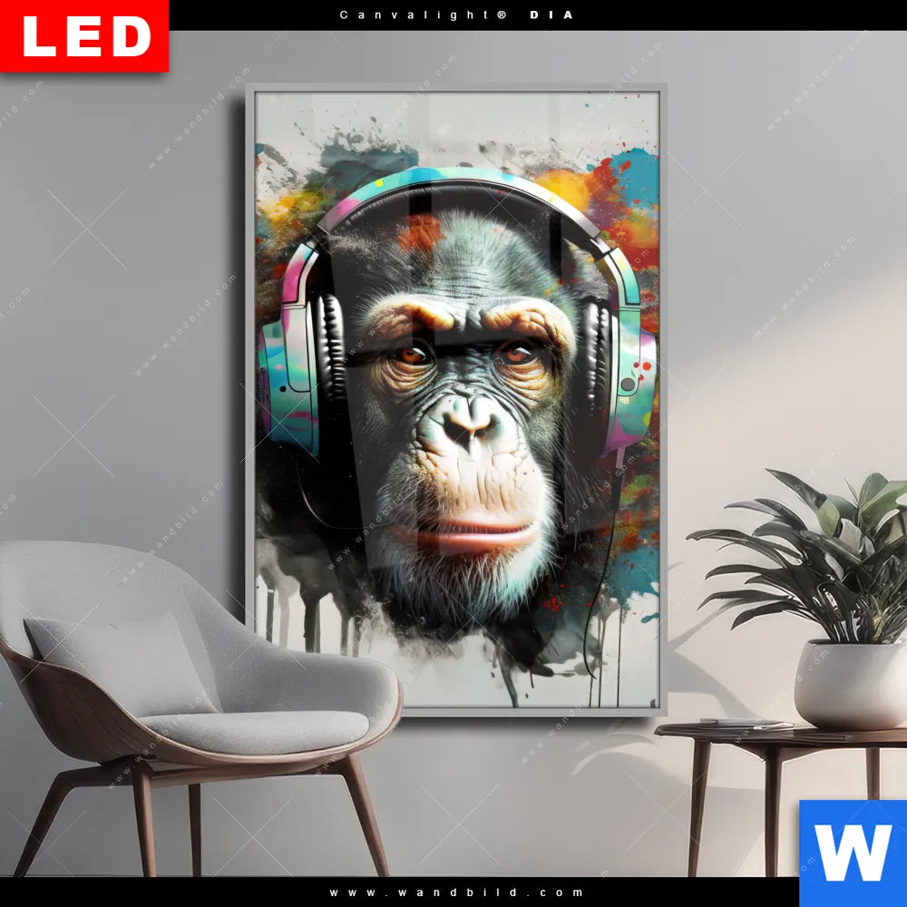 Wechselmotiv Acrylglas Canvalight® DIA | Musikalischer Affe | Hochformat