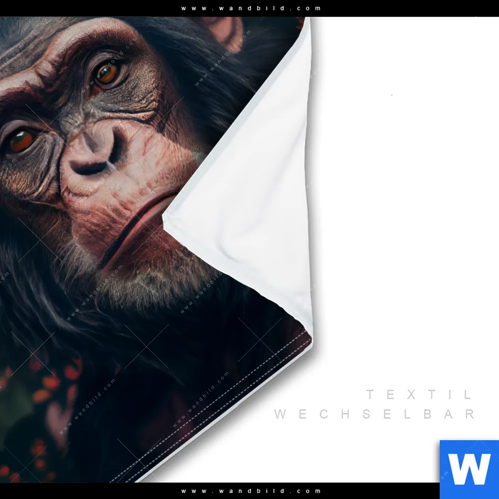 Wechselmotiv Textil | Schimpanse zwischen Blumen | Quadrat