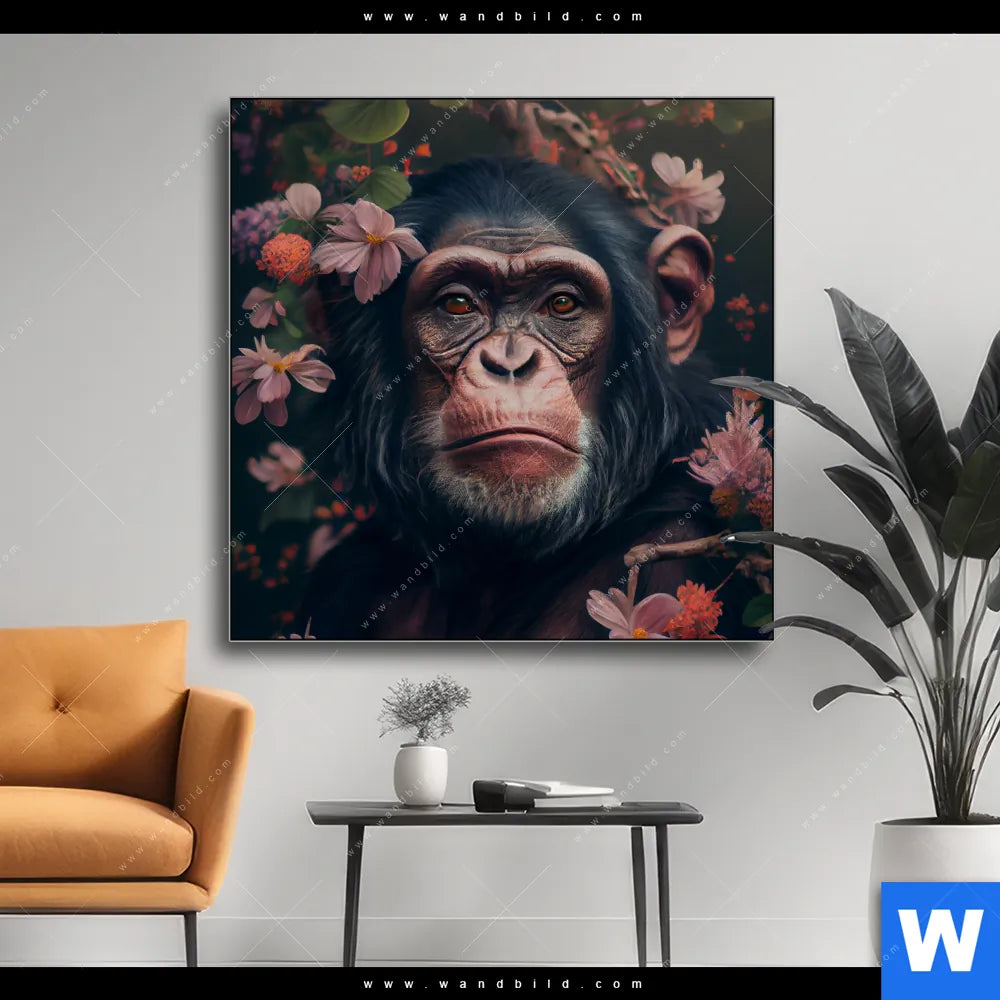 Wechselmotiv | Schimpanse zwischen Blumen | Quadrat