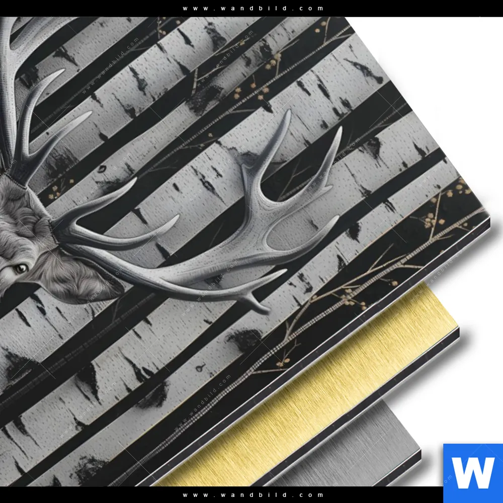 Alu-Dibond Bild | Hirschporträt vor Birken | Hochformat