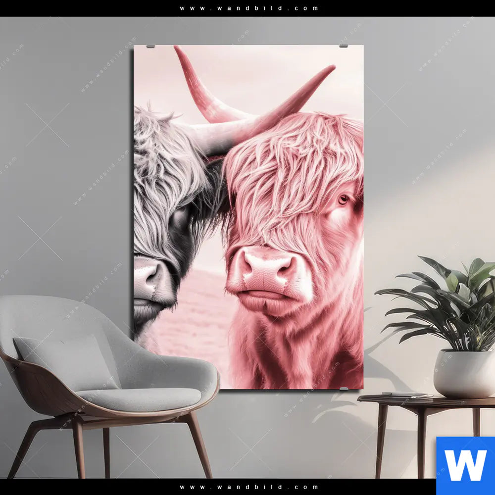 Alu-Dibond Bild | Hochlandrinder - Harmonie in Pastell | Hochformat