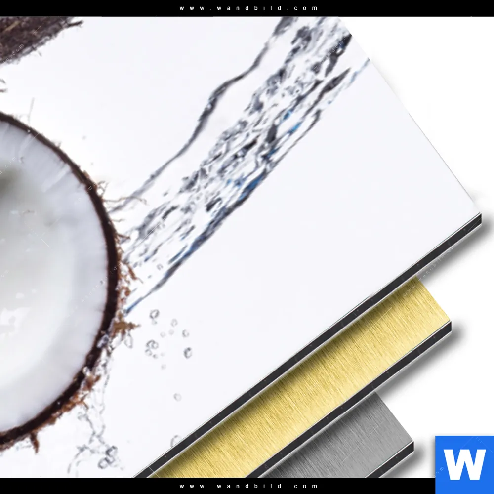 Alu-Dibond Bild | Kokosnüsse mit Wasserspritzer | Panorama