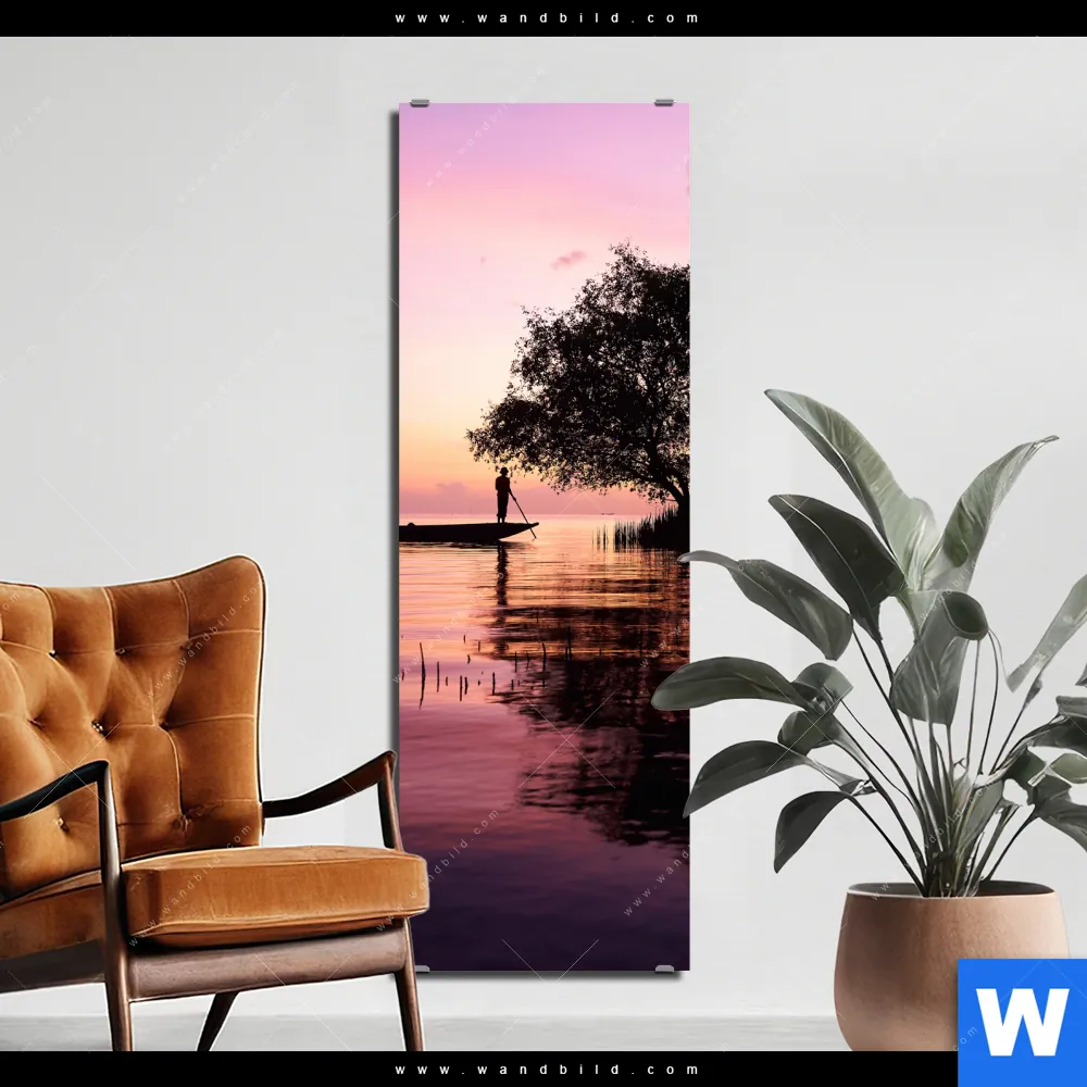 Alu-Dibond Bild | Fischer auf Boot Sonnenaufgang | Schmal