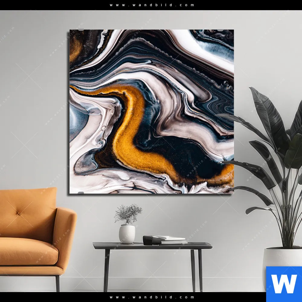 Alu-Dibond Bild | Fluid Art Goldrausch | Quadrat