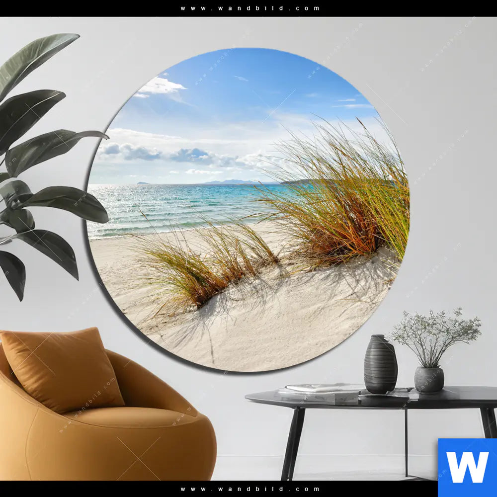 Alu-Dibond Bild | Dünenlandschaft mit Meerblick | Rund