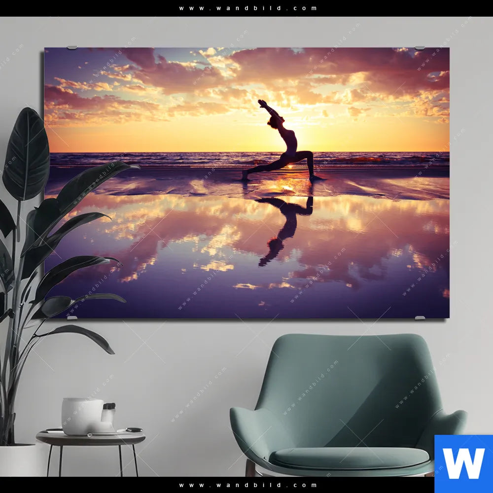 Alu-Dibond Bild | Yoga am lila Strand | Querformat