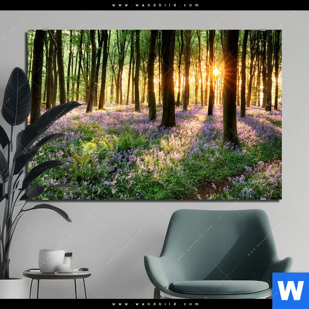 Alu-Dibond Bild | Blühender Wald bei Sonnenaufgang | Querformat