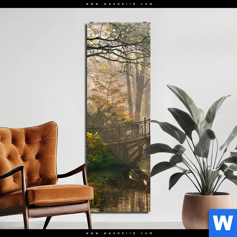 Alu-Dibond Bild | Idyllischer Wald mit Brücke | Schmal