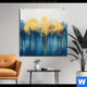 Alu-Dibond Bild | Abstrakter Wald - Blau & Gold | Rund